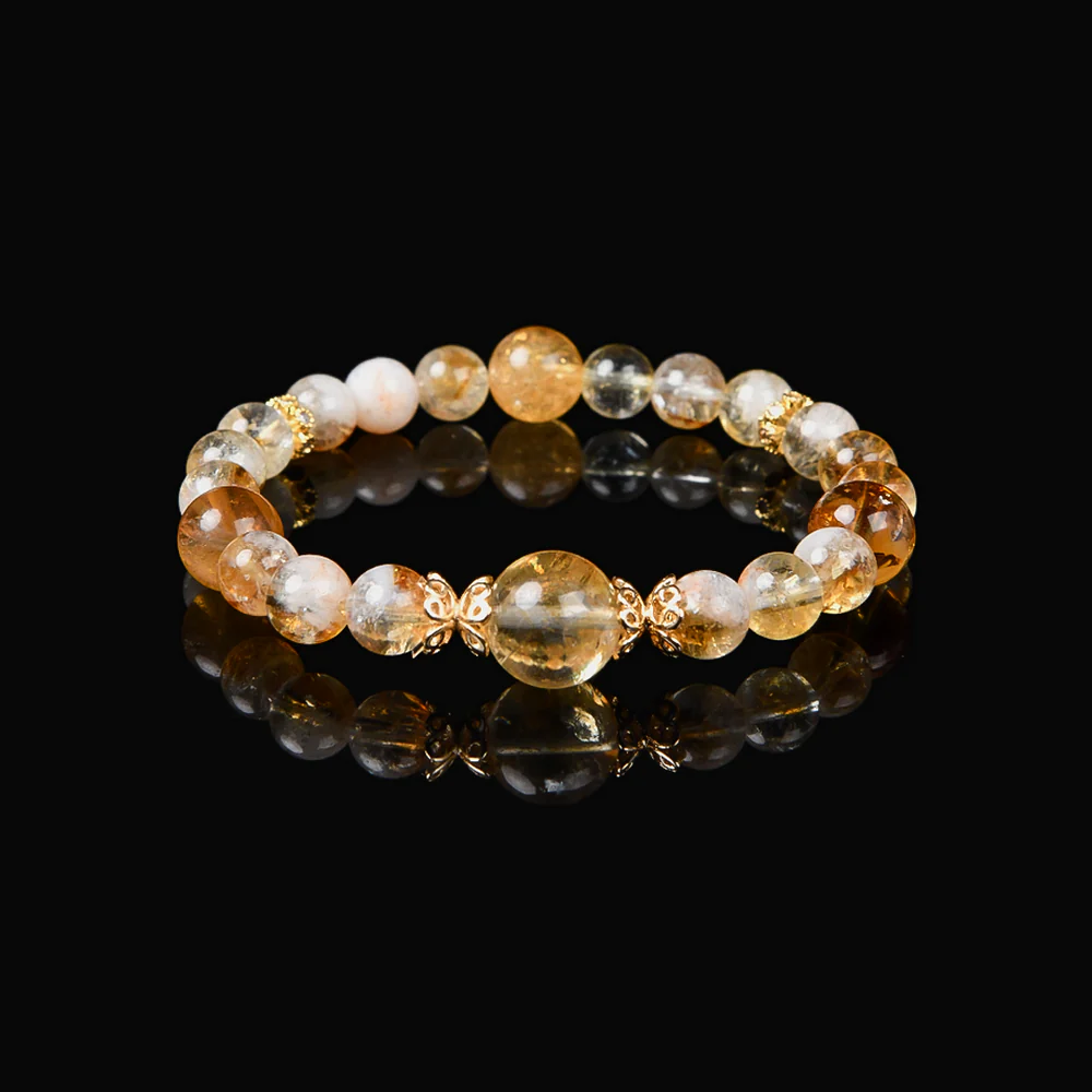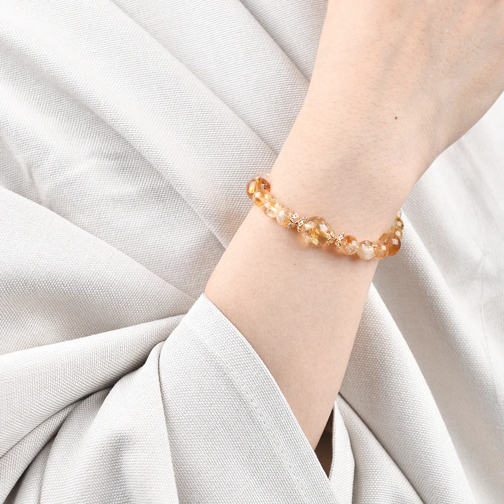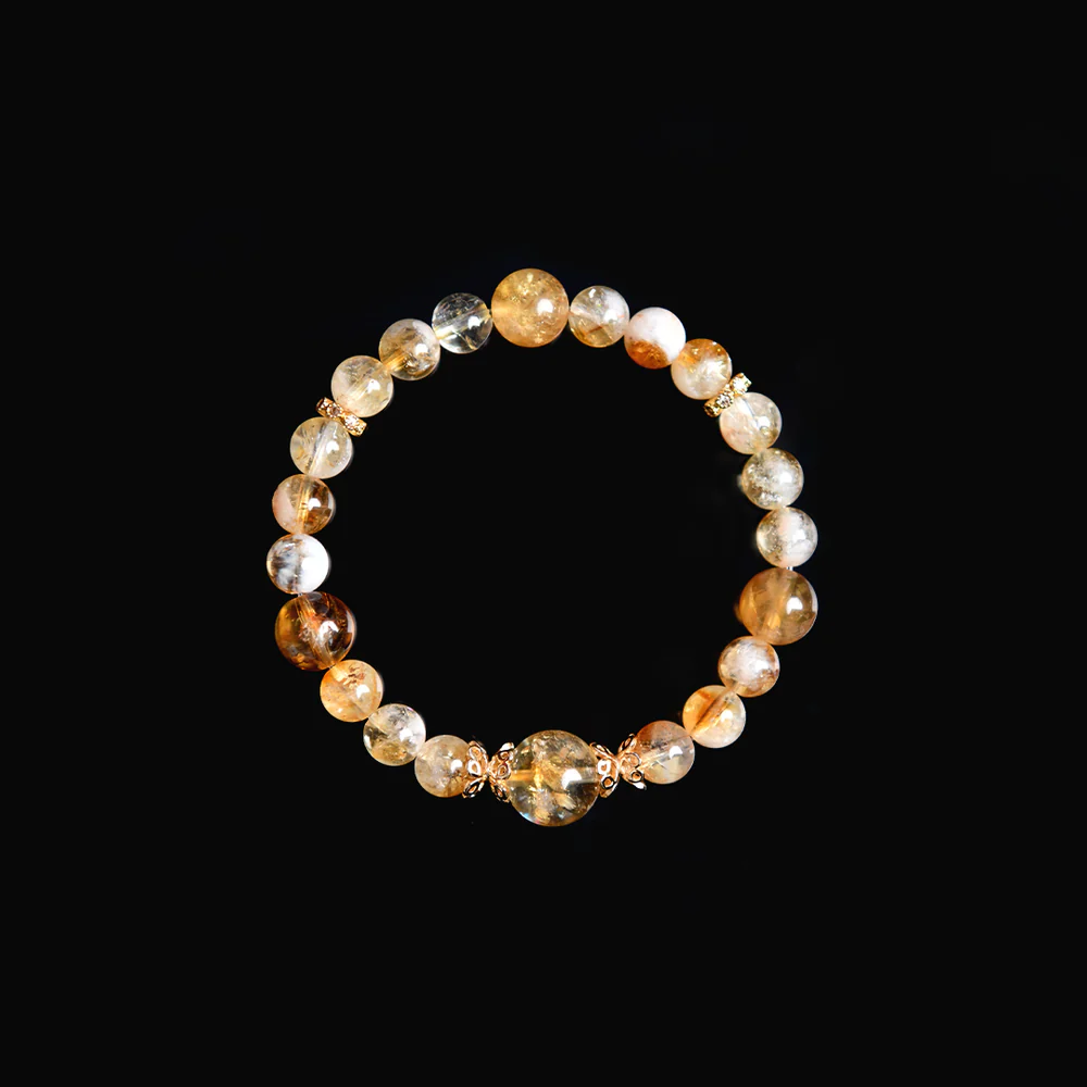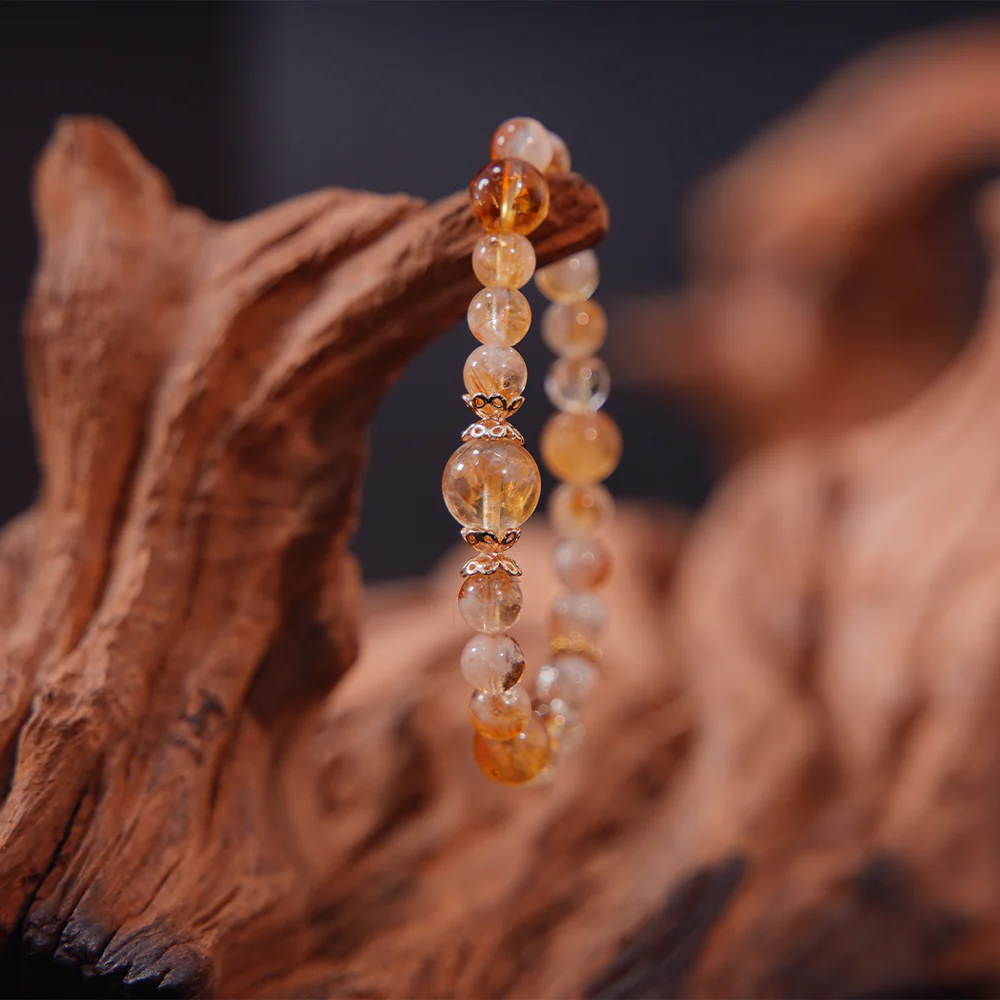 シトリンは「富の石」として知られ、ポジティブなエネルギーを引き寄せ、事業の成功や経済的な繁栄をサポートします。選び抜かれたシトリンは、黄金のような輝きを放ち、温かなエネルギーと共に、正のエネルギーと財運の祝福をもたらします。金属の輝きとシトリンの温かな光が一体となり、優雅な舞いのように財運を引き寄せ、心を明るくし、前向きなエネルギーを高めます。身に着けることで、内面的な平和と自信を得ながら、財運と成功の扉を開くことができるでしょう。